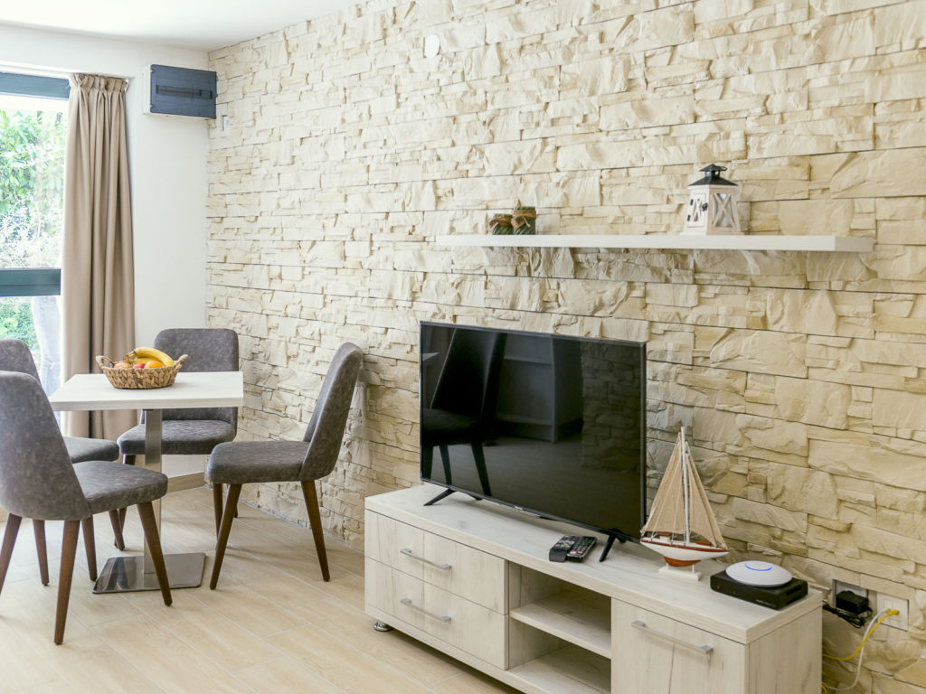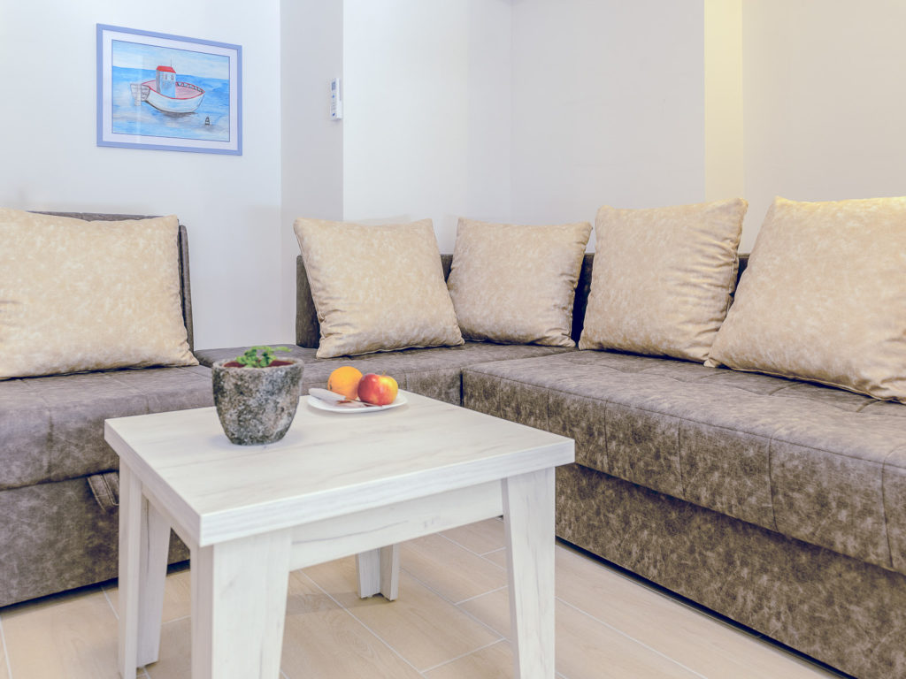 This is comfortable apartment on the ground floor. Suitable for family. The Apartment consists of bedroom (double bed), living room with separated kitchen and dining area. In Living room there is sofa bed that can be used for two. The apartment have spacious bathroom. Apartment has porch with seating area 40 sqm (410 sqft).